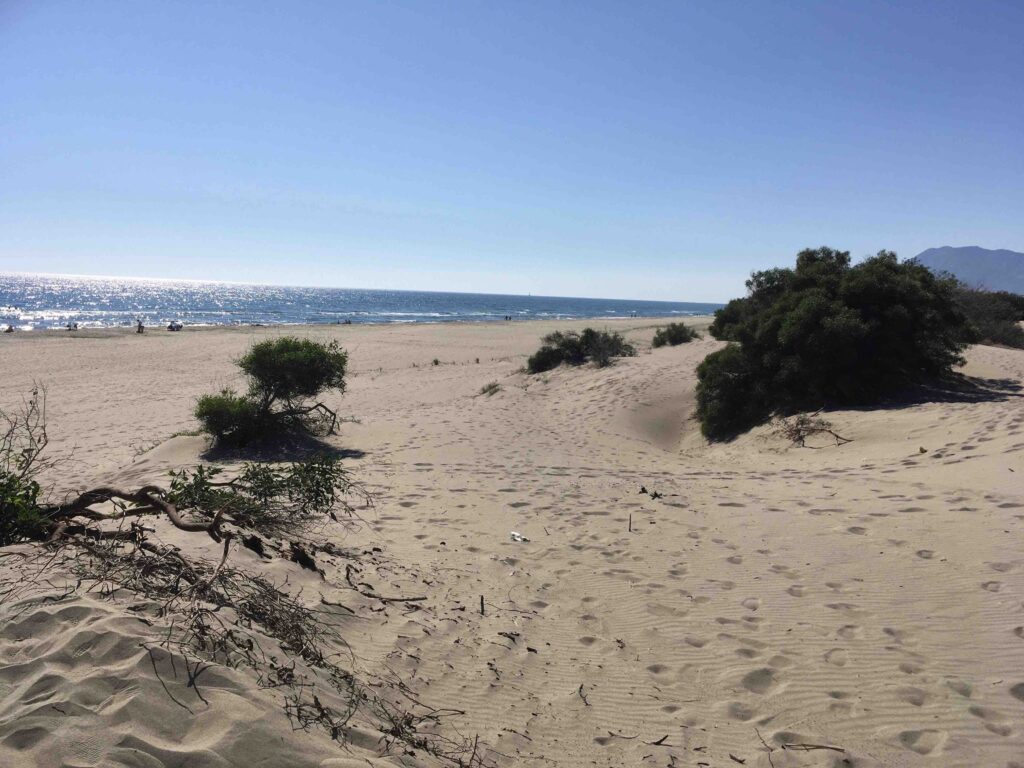 There is an entrance fee to enter the national park unless you have a Museum Pass, which includes access to the beach and ancient sites. The car park is a bit of a walk from the beach, but you can purchase souvenirs like hats, towels, and sandcastle buckets from the stalls located at the entrance. A pleasant path leads to the beach, weaving through the dunes and flora.