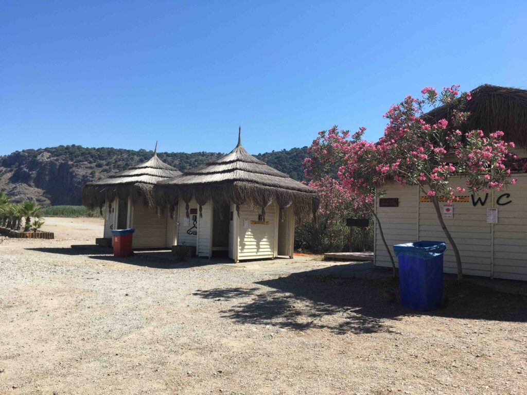 Akçagerme Beach also has decent facilities, with showers, changing rooms, and washrooms available for visitors. Sun loungers with umbrellas and cabanas are available for rent, and there is a cafe and a restaurant where you can enjoy a meal or a refreshing drink at affordable prices. There is also a campsite just across the road.