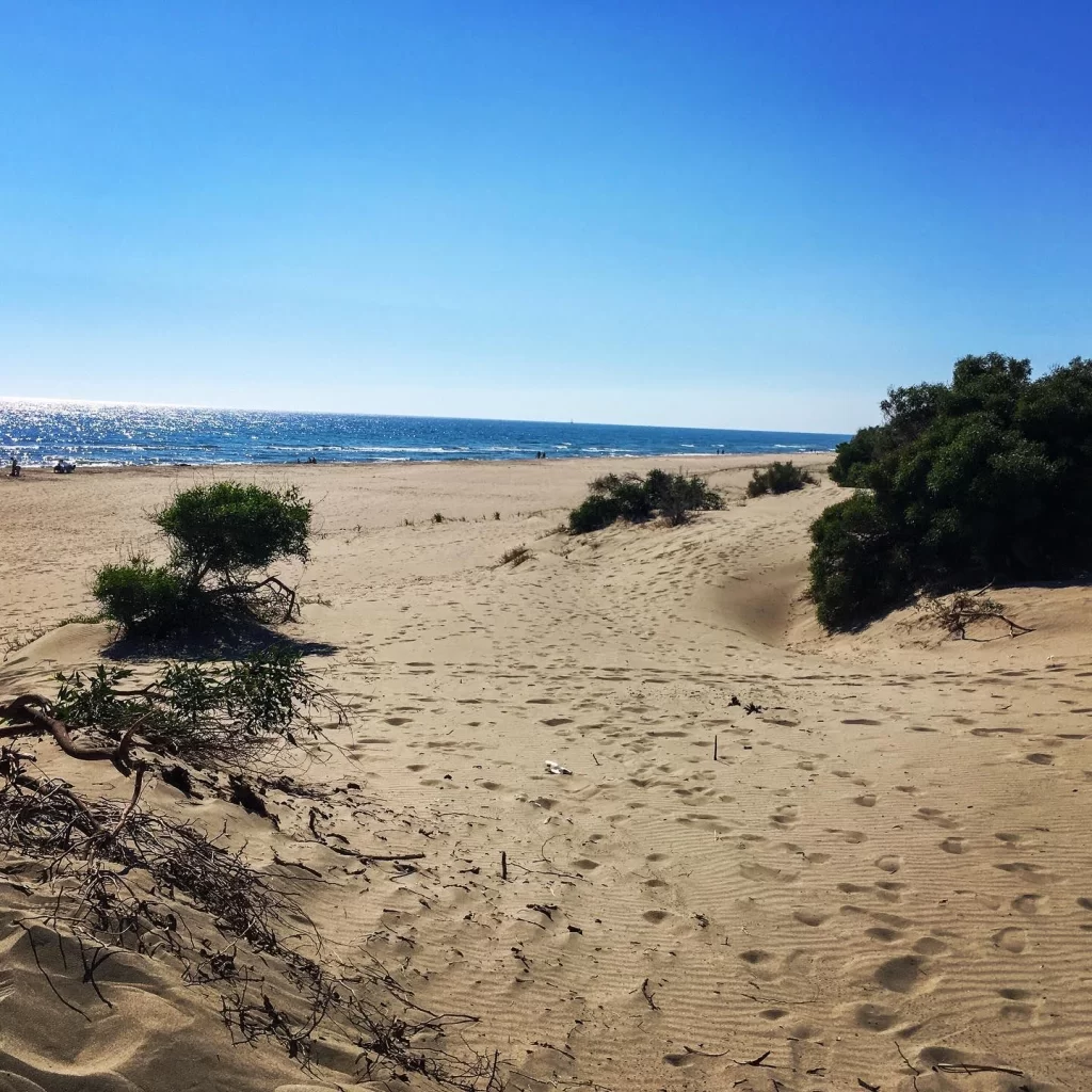 There is an entrance fee to enter the national park unless you have a Museum Pass, which includes access to the beach and ancient sites. The car park is a bit of a walk from the beach, but you can purchase souvenirs like hats, towels, and sandcastle buckets from the stalls located at the entrance. A pleasant path leads to the beach, weaving through the dunes and flora.