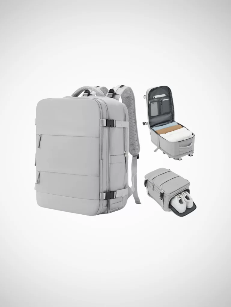 A compact underseat backpack is perfect for budget airlines and quick trips. It stores your essentials without taking up cabin luggage space and keeps everything within reach. I don’t travel without one; in fact, we all have one now as it is so practical.