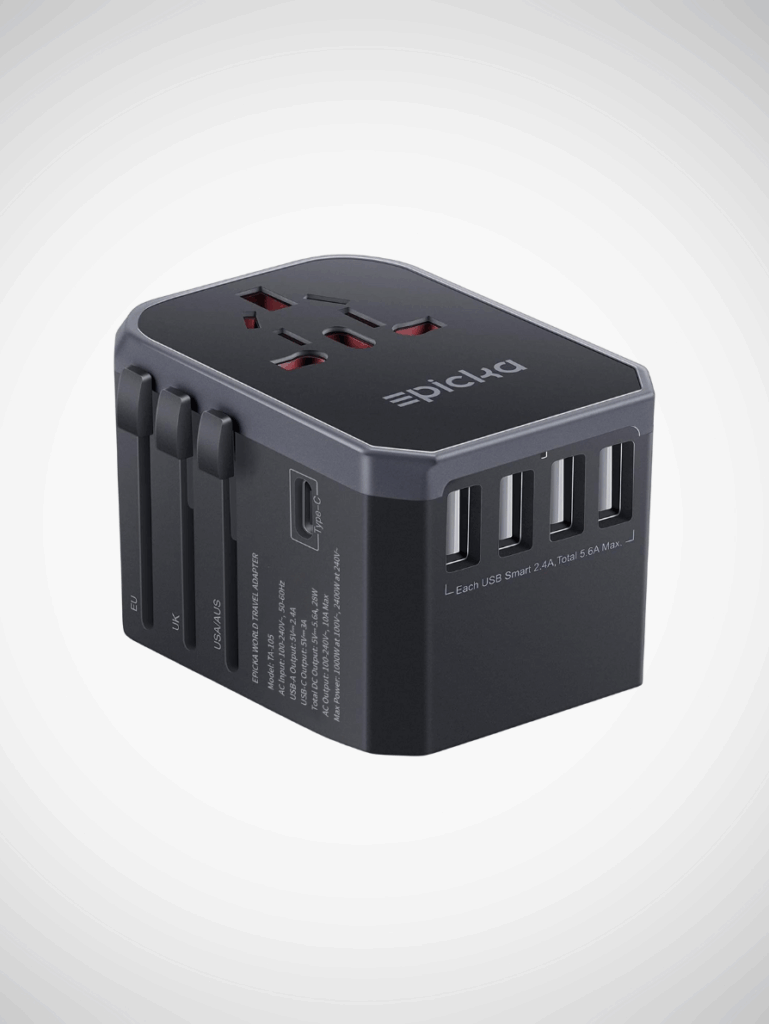 A compact travel adapter is essential if you’re moving between countries. One small device covers multiple plug types and lets you charge all your gadgets safely.